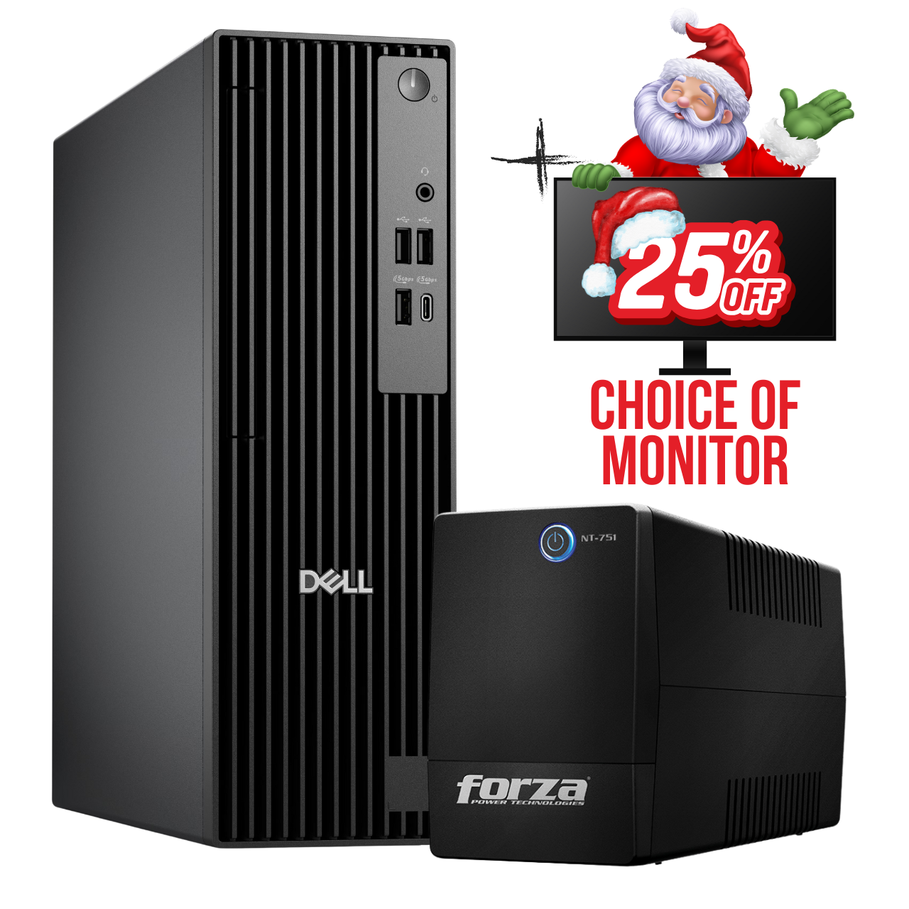 Upgrade your workspace this Christmas with GS-COM’s exclusive offer. Get the power of a Dell Pro Slim Desktop, enjoy reliable backup with a FREE Forza UPS, and save 25% on any monitor in-store.