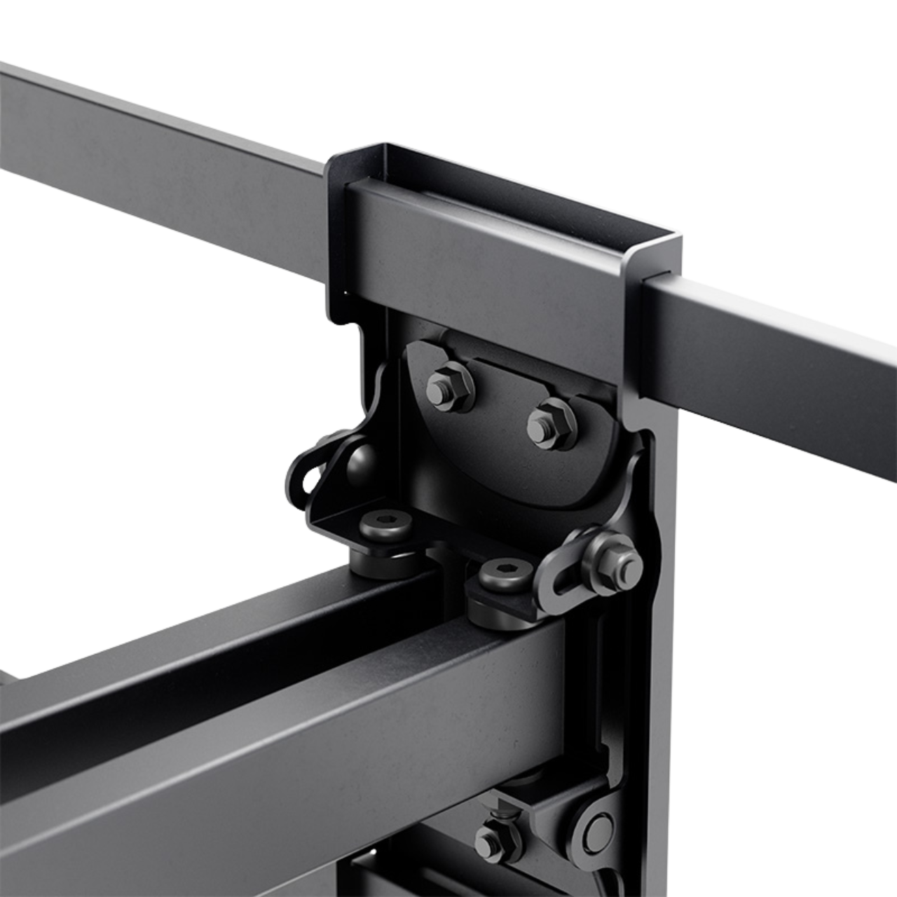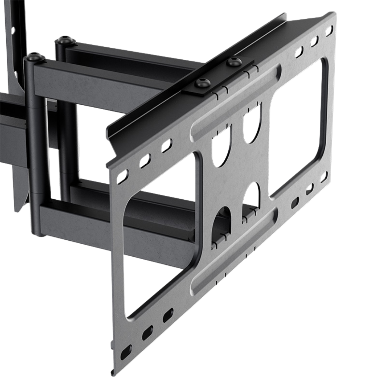 - Full-motion mount compatible with flat and curved TVs