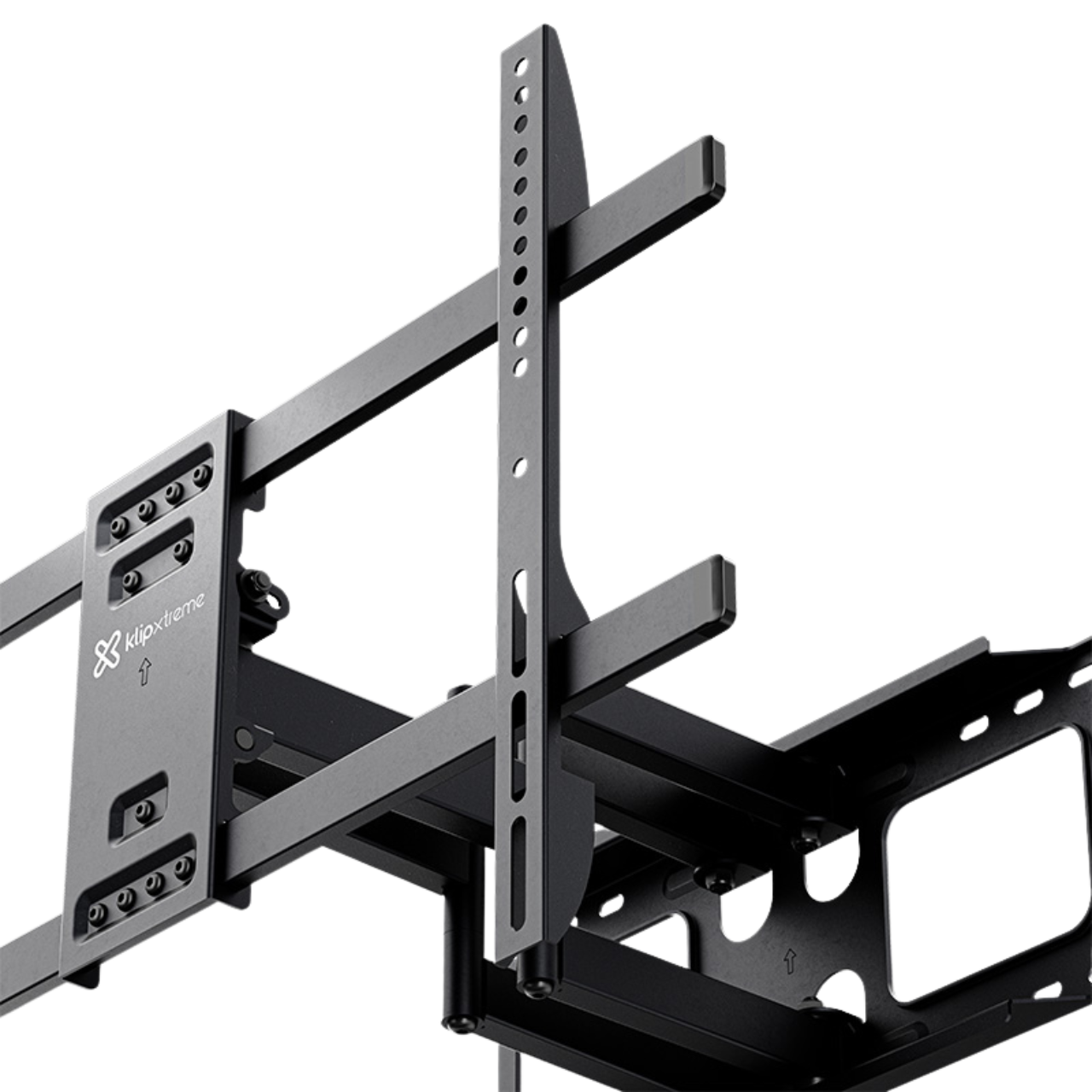 KlipXtreme 37"-90" Full Motion TV Mount This articulated TV mount offers a versatile and space-saving solution for your entertainment space. With tilt and swivel capabilities, its arm moves to adapt to any surface. Made of heavy-duty steel, it supports up to 132 lb and it works for flat and curved...
