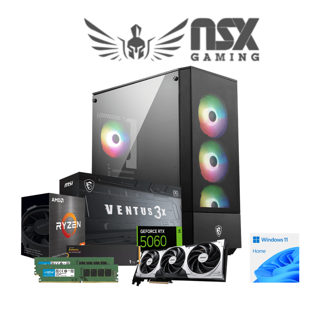 NSX Gaming PC (AMD Ryzen 5 5600X 3.8 GHz, NVIDIA RTX 5060, 1TB NVME SSD, 16GB DDR4 RAM, Wi-Fi, Bluetooth, Windows 11 64-bit